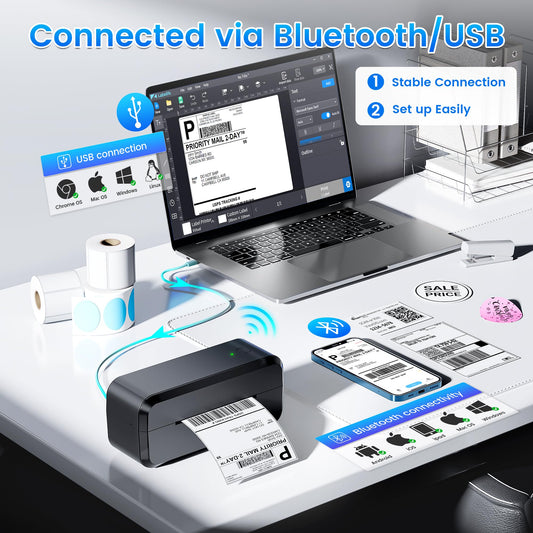 Bluetooth Thermal Shipping Label Printer, Wireless 4x6 Label Printer for Shipping Packages & Small Business, Compatible with Android, IOS, Windows and Mac, Widely Used for Ebay, Amazon, Shopify, USPS
