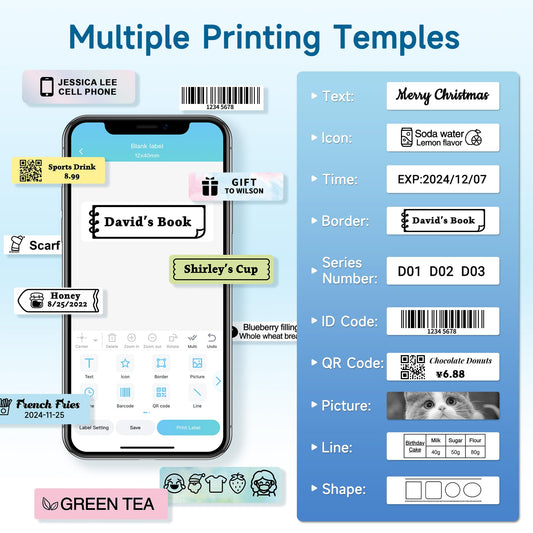 Label Makers, Label Maker Machine with Tape, Portable Bluetooth Label Printer with Little Space, Inkless Thermal Label Maker for Family School, Mini Label Maker with Multiple Personalized Templates