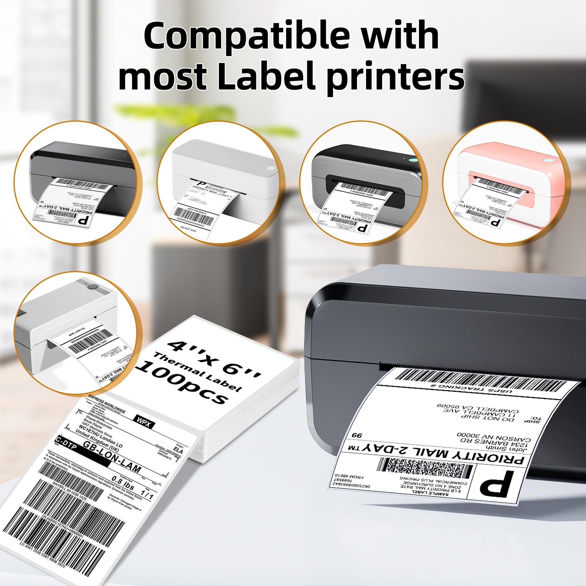 - Broad Application: 100 pcs thermal labels are suitable for printing shipping labels and internet postage labels for various transportation and e-commerce platforms, including FedEx, USPS, UPS, Shopify, Etsy, Amazon, eBay, PayPal, Poshmark, Depop, Mercari, etc