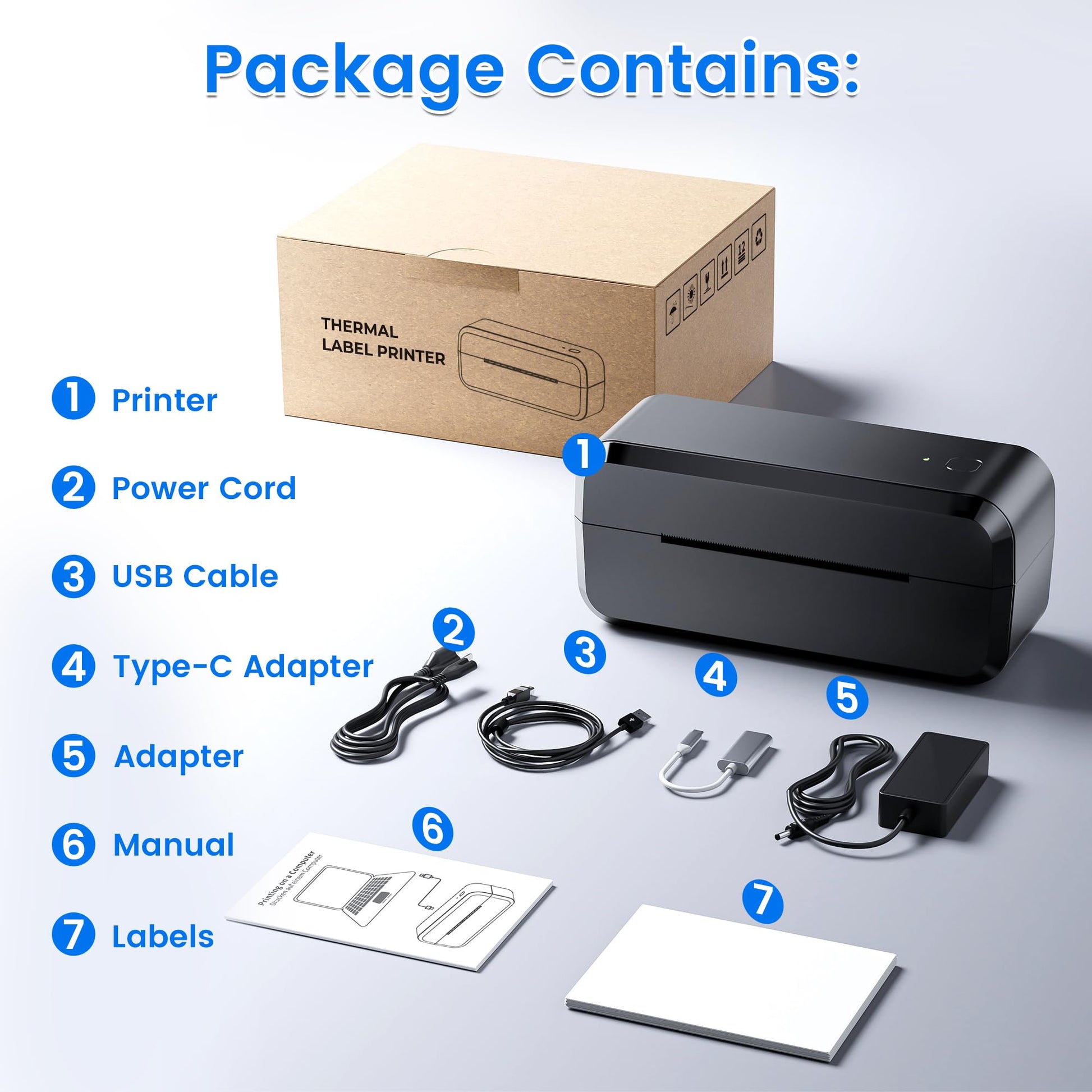 - Professional Customer Support: Our dedicated team is committed to delivering exceptional technical support to our valued customers. In addition, our thermal printer is accompanied by comprehensive text guides, ensuring a seamless setup and operation experience. Note: The quantity of 4 x 6 thermal labels is randomly allocated