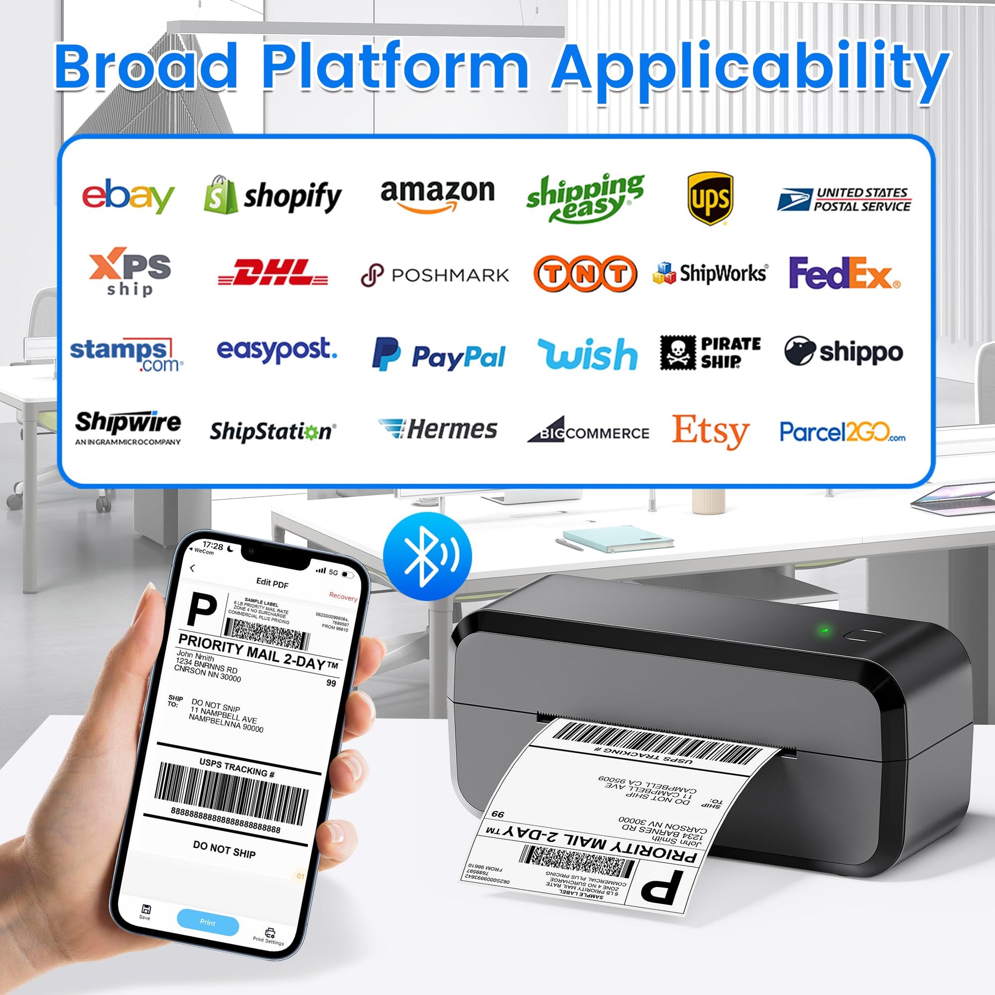 Bluetooth Thermal Shipping Label Printer, Wireless 4x6 Label Printer for Shipping Packages & Small Business, Compatible with Android, IOS, Windows and Mac, Widely Used for Ebay, Amazon, Shopify, USPS